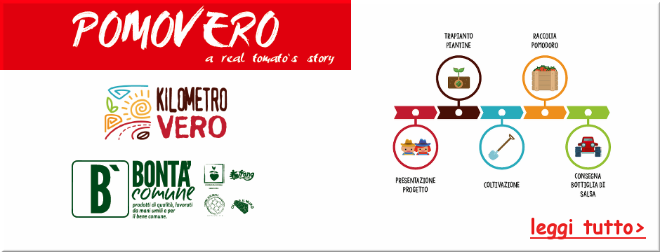POMOVERO è un progetto curato dal collettivo delle botteghe del commercio equo e solidale pugliese «Kilometro Vero» e una rete di cooperative e imprese sociali creatrici del marchio «Bontà Comune». L'unione dei due progetti ha generato l'idea di produrre, senza spreco, mantenendo la trasparenza n...