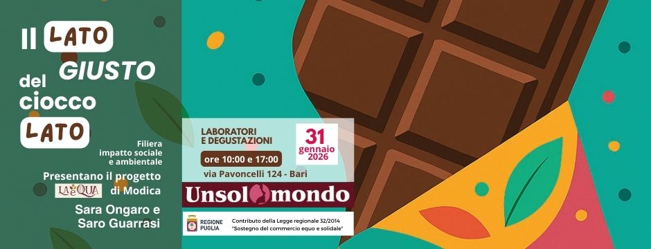 Benvenuto in Unsolomondo! Ci impegniamo ogni giorno per favorire una equa distribuzione delle risorse e la tutela dell'ambiente promuovendo il commercio equo e solidale. La tua scelta di consumo, critico e consapevole, può incidere e contribuire allo sviluppo di donne e uomini, agricoltori ed artigiani dei paesi più poveri del mondo, senza sfruttamento del lavoro e dell'ambiente. Partecipa anche tu, ti aspettiamo per traguardare nuovi orizzonti di giustizia e solidarietà!